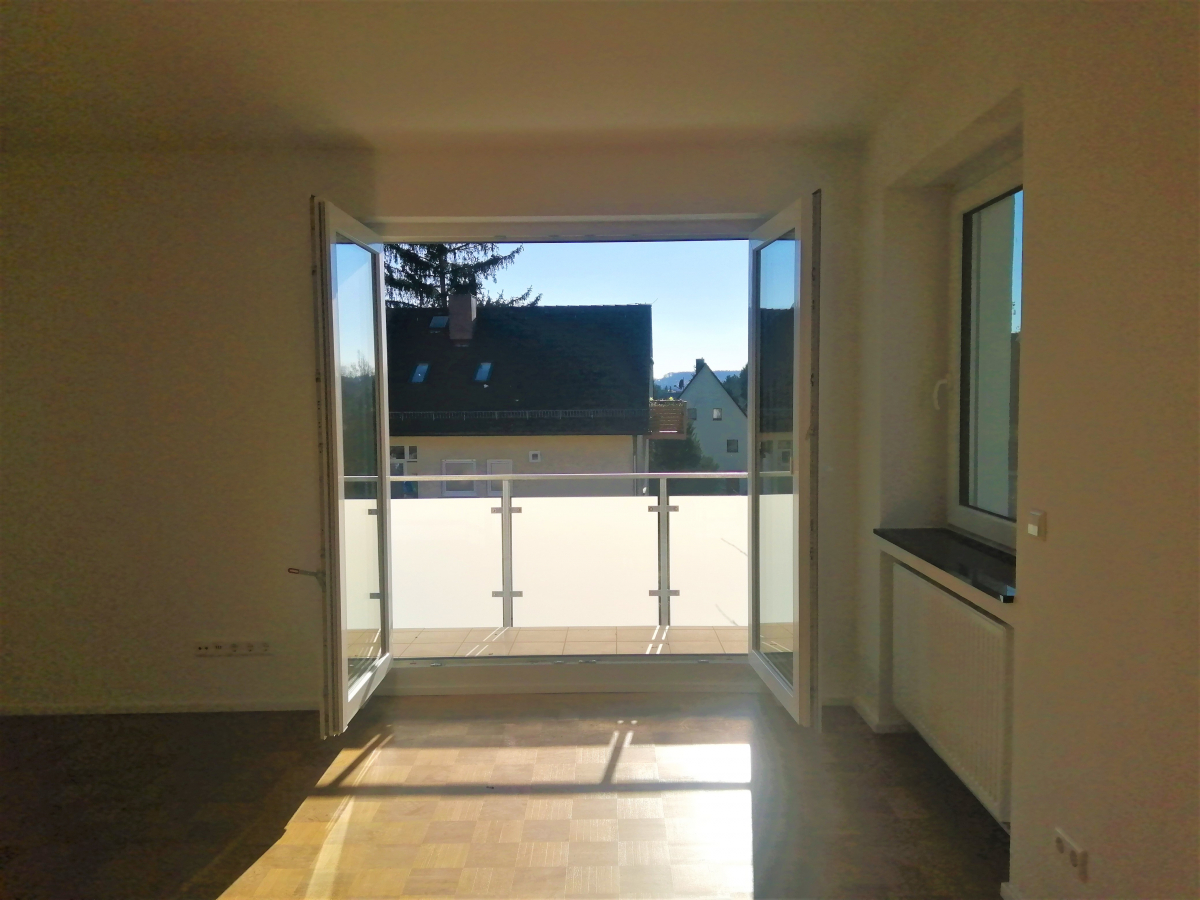 Die großzügig geschnittene 4-Zimmer Wohnung befindet sich im Obergeschoss eines Dreifamilienhaus in einer ruhigen Straße am Rand von Stuttgart Möhringen. Das Haus wurde im Jahr 2020/21 kernsaniert. Die Sanierung beinhaltete: Fassaden- und Dachdämmung, Fensteraustausch, Böden, Sanitäranlagen und die Installation eines neuen Heizsystem. Die moderne Wohnung teilt sich auf in ein offenes Wohn- und Esszimmer mit angrenzender Küche (ohne EBK), zwei Schlafzimmer und ein Arbeitszimmer sowie zwei Bäder. Die Tageslichtbäder sind mit einer Badewanne und Dusche ausgestattet. Die Fliesen sind schlicht weiß mit anthrazit-farbenen Fliesen kombiniert. Durch das Wohn- und Esszimmer gelangt man auf den sonnigen Balkon.